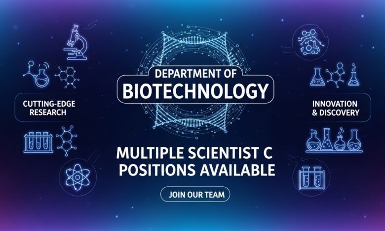 The Department of Biotechnology invites applications from highly motivated, qualified, and research-oriented professionals for multiple Scientist C positions. This is an excellent opportunity to join a dynamic team dedicated to advancing scientific research, innovation, and technological development in the field of biotechnology.